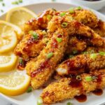 Once the chicken fingers are out of the oven (or fryer), generously drizzle them with the thick, glossy glaze. If you like a touch of fresh contrast, sprinkle some chopped green onions on top. These add a lovely pop of color and a mild oniony brightness that cuts through the sweetness.