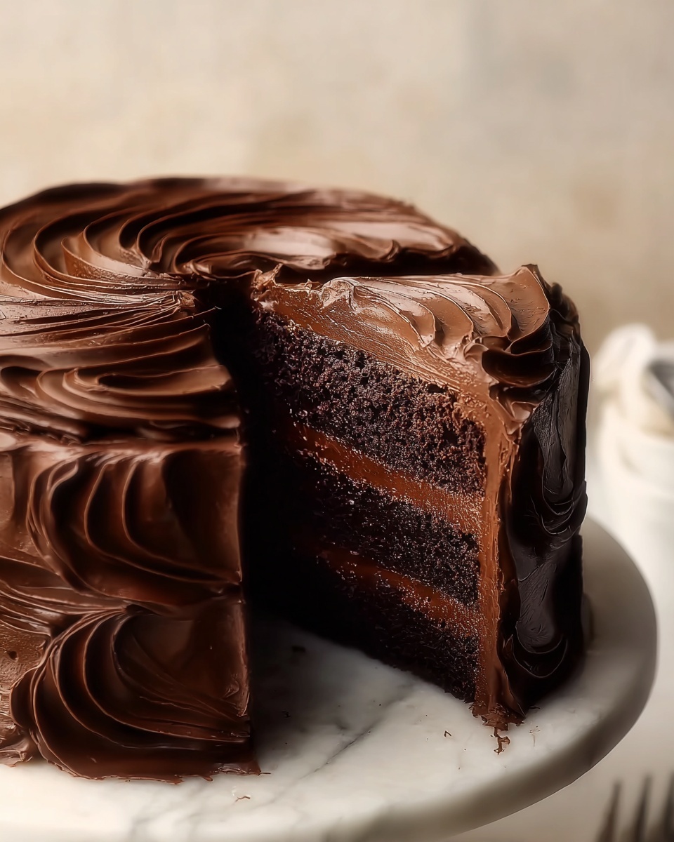 For a special occasion, try stacking mini versions of this cake to create individual layered treats or use it as a base for a chocolate trifle with layers of cream and fruit. You can also pipe swirls of whipped ganache or chocolate mousse across the top to add texture and a professional look.