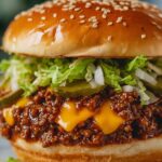 Big Mac Sloppy Joes are a delicious twist on the classic sloppy joe sandwich, combining ground beef cooked with savory spices and a special homemade Big Mac sauce. This recipe features layers of American cheese, shredded iceberg lettuce, and tangy Big Mac sauce all piled high on toasted hamburger buns, delivering a flavorful and comforting meal reminiscent of the iconic Big Mac burger.