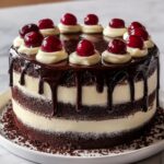 - Decorate: Garnish the top of the cake with chocolate shavings or curls and fresh cherries, if desired, for a classic Black Forest presentation.