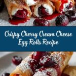 Delightful Cherry Cream Cheese Egg Rolls featuring a creamy blend of cream cheese, powdered sugar, and vanilla, combined with sweet cherry pie filling wrapped in crispy egg roll wrappers. These can be fried for a traditional golden crisp or baked for a lighter option, perfect as a dessert or sweet snack.