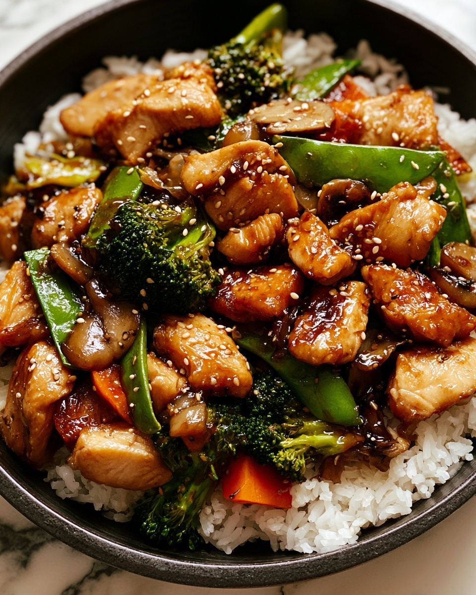A quick and flavorful Chicken Stir Fry featuring tender sliced chicken breast and a vibrant mix of fresh vegetables, cooked with a savory blend of soy, oyster, and hoisin sauces. Perfect for a healthy weeknight dinner that comes together in just 30 minutes.