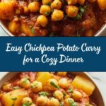 A hearty and flavorful Chickpea & Potato Curry made with aromatic spices, creamy coconut milk, and tender potatoes. This comforting vegetarian dish is perfect for a satisfying meal, served with rice or naan and garnished with fresh cilantro.