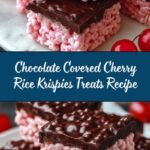 These Chocolate Covered Cherry Rice Krispies Treats combine the classic crispy marshmallow base with the tartness of dried cherries and a silky dark chocolate topping, creating a delightful and easy-to-make dessert perfect for any occasion.
