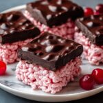 These Chocolate Covered Cherry Rice Krispies Treats combine the classic crispy marshmallow base with the tartness of dried cherries and a silky dark chocolate topping, creating a delightful and easy-to-make dessert perfect for any occasion.
