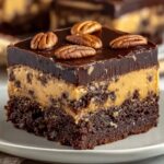 A decadent Chocolate Pecan Ooey Gooey Butter Cake combining a rich chocolate cake crust with a creamy, buttery pecan and chocolate chip filling. Perfectly gooey in the center, this dessert balances textures and flavors for an irresistible treat.
