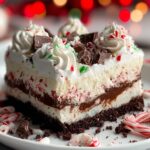 This Chocolate Peppermint Lasagna is a festive, no-bake dessert featuring layers of crushed chocolate cookies, a creamy peppermint cream cheese filling, rich chocolate pudding, and a whipped topping garnished with crushed candy canes and chocolate shavings. Perfect for holiday gatherings, it offers a refreshing peppermint twist combined with luscious chocolate flavors in a visually appealing, easy-to-make layered treat.