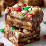 These festive Christmas Cookie Bars combine buttery dough with vibrant red and green chocolate candies, white chocolate chips, and holiday sprinkles, perfect for celebrating the season with a delicious, easy-to-make treat.