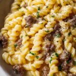 For a show-stopping presentation, serve your Creamy Ground Beef Alfredo Pasta Recipe in individual shallow bowls with a generous sprinkle of parsley and Parmesan on top. Alternatively, bake the pasta briefly with a sprinkle of mozzarella until golden and bubbly for a delightful twist.
