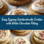 Microwave chopped white chocolate and eggnog in short intervals, stirring frequently until smooth and melted. Mix in the dark rum or rum extract if using, plus the freshly grated nutmeg. This silky ganache-like filling takes your snickerdoodle cookies to heavenly new heights with creamy richness and festive spice.