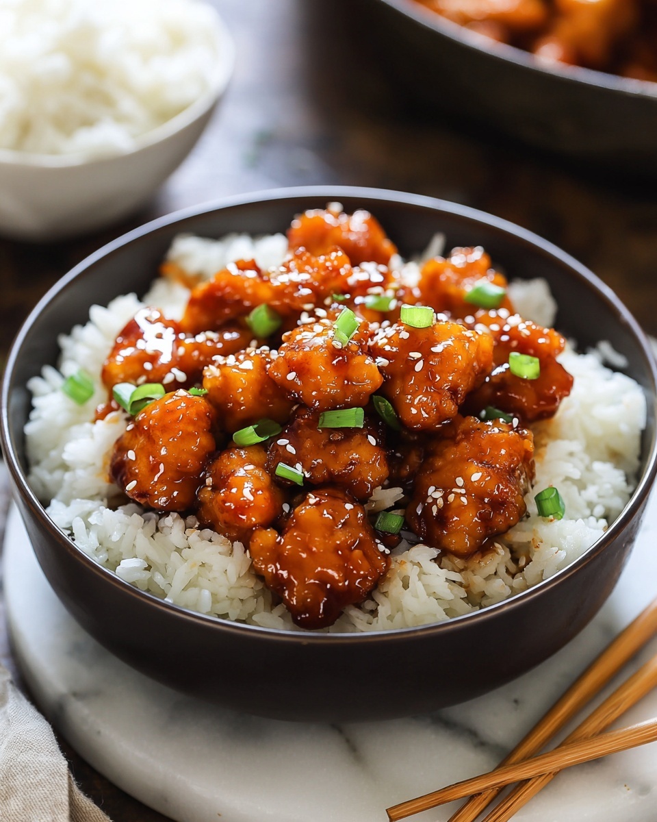 Sprinkle chopped green onions and sesame seeds over the chicken just before serving. These garnishes not only add pops of color but also bring fresh crunch and nuttiness that elevate the dish to the next level.