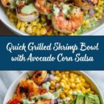 A vibrant and flavorful grilled shrimp bowl featuring succulent shrimp seasoned with smoky spices, topped with a fresh avocado corn salsa, and finished with a zesty creamy sauce. Perfect for a quick, healthy, and delicious meal in just 21 minutes.