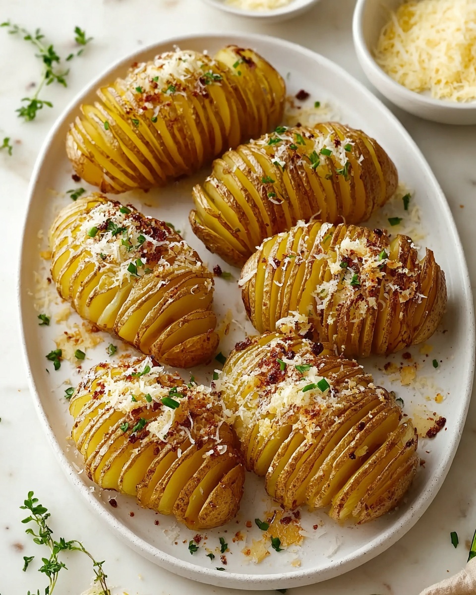 How to Make Hasselback Potatoes with Garlic, Herbs, and Parmesan Recipe