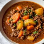 A hearty and flavorful Ground Beef Stew packed with tender vegetables and rich seasonings, perfect for a comforting family meal. This easy-to-make stew combines ground beef with potatoes, carrots, celery, and aromatic herbs simmered to perfection in a thickened savory broth.