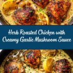This Herb Roasted Chicken in Creamy Garlic Herb Sauce is a comforting and flavorful dish featuring tender seared chicken pieces roasted in a rich, creamy sauce loaded with mushrooms, herbs, and baby potatoes. The sauce is infused with garlic, fresh sage, parsley, and a hint of lemon, creating a perfect balance of savory and tangy flavors. Ideal for a hearty family dinner, this recipe combines pan-searing and oven roasting to deliver juicy chicken with crispy skin and a luscious mushroom-potato sauce.