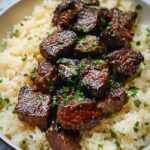 • 1 lb steak (ribeye, sirloin, or your choice), cut into bite-sized pieces