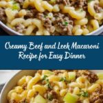 A comforting and creamy leek beef macaroni dish combining tender ground beef and sautéed leeks in a rich, velvety sauce made with heavy cream and beef broth, perfectly coating al dente macaroni for a satisfying meal.