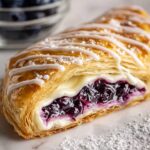 This Lemon Blueberry Cheese Danish is a delightful pastry featuring flaky puff pastry filled with a creamy lemon-infused cream cheese mixture and topped with sweet blueberry preserves. Finished with a tangy lemon glaze, this dessert is perfect for brunch, tea time, or a special treat.