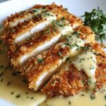 This Parmesan Crusted Chicken with Creamy Garlic Sauce is a deliciously crispy and savory dish featuring boneless chicken breasts coated in a flavorful Parmesan and breadcrumb crust, pan-fried to golden perfection, and served with a rich and silky garlic cream sauce. Perfect for a comforting weeknight dinner or special occasion.