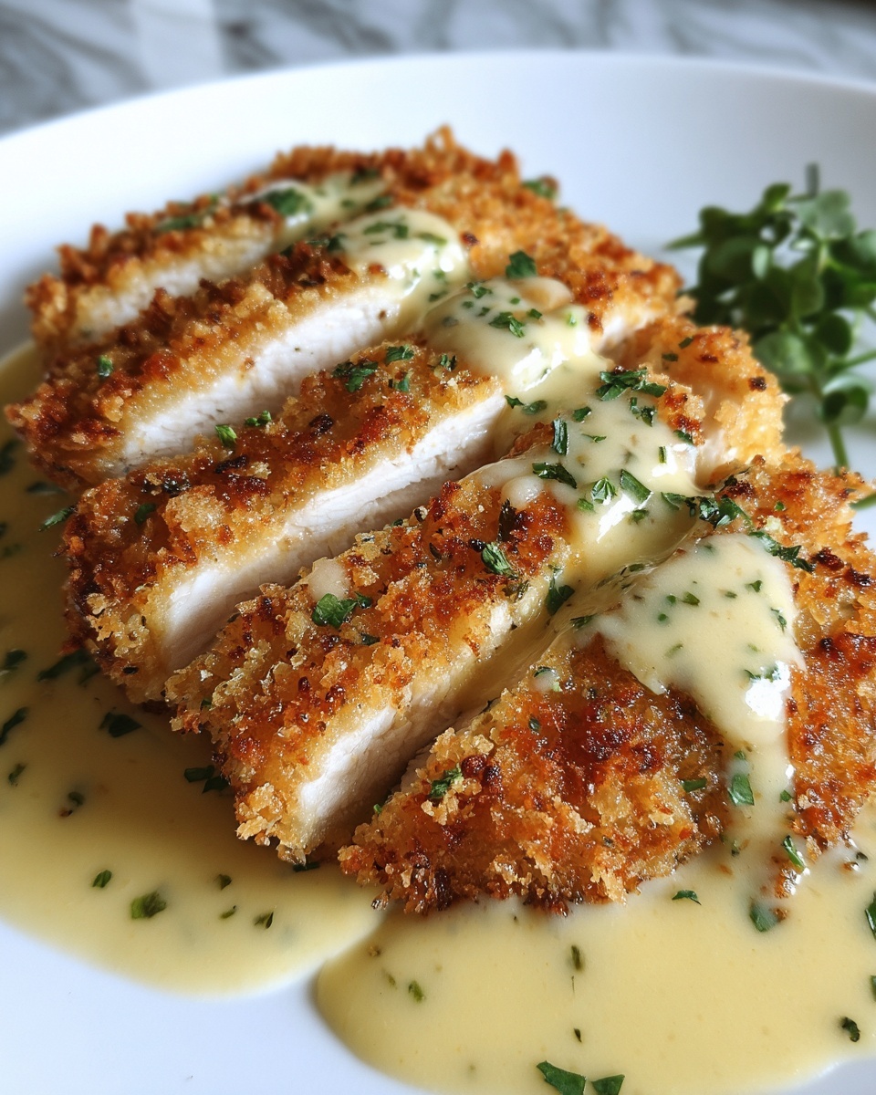 How to Serve Parmesan Crusted Chicken with Creamy Garlic Sauce Recipe