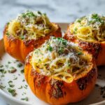 - Assemble and Serve: Spoon the sauced pasta into each roasted pumpkin, forming appealing pasta nests. Garnish with chopped parsley, pumpkin seeds, and extra grated Parmesan cheese. Serve immediately while warm and enjoy the blend of roasted pumpkin and creamy pasta.
