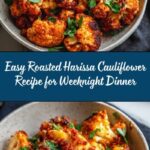 This Roasted Harissa Cauliflower recipe features tender cauliflower florets coated in a spicy, smoky harissa marinade, then oven-roasted to perfection. The dish combines flavorful North African-inspired spices such as cumin, smoked paprika, and garlic powder with the heat of harissa paste, resulting in a crispy, slightly charred vegetable side that is perfect for any meal. Garnished with fresh cilantro and served with lemon wedges, this recipe is a vibrant, healthy way to enjoy cauliflower with a bold and zesty twist.
