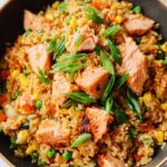 A quick and flavorful Salmon Fried Rice recipe featuring tender wild salmon, fluffy rice, and nutritious cauliflower rice, all stir-fried with scallions, egg, and a touch of soy sauce and sesame oil. Perfect for a wholesome and satisfying meal in just 25 minutes.