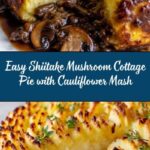 A hearty and comforting vegetarian shiitake mushroom cottage pie topped with creamy cauliflower mash. This dish combines savory mushroom and vegetable filling seasoned with herbs and tomato paste, thickened to perfection, and finished with a silky cauliflower topping for a nutritious twist on a classic comfort food.