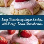 Delight in these Strawberry Sugar Cookies, a perfect blend of buttery sweetness and fruity strawberry flavor. Featuring freeze-dried strawberries mixed into the dough and a light powdered sugar glaze, these cookies are soft, tender, and beautifully flavorful—a fantastic treat for any occasion.