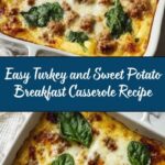A hearty and nutritious Turkey and Sweet Potato Breakfast Casserole featuring layers of thinly sliced sweet potatoes, seasoned ground turkey, spinach, and a flavorful egg mixture baked to perfection. This dish is perfect for a wholesome morning meal that balances protein, veggies, and complex carbohydrates.