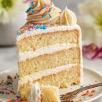 If you want to enjoy your Vanilla Dream Cake Recipe warm, gently warm a slice in the microwave for 10 to 15 seconds. This melts the buttercream slightly and brings out the vanilla flavor even more. Just don’t overheat, or it might become too soft.