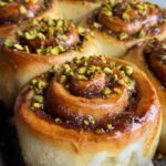 Delight in these decadent White Chocolate Pistachio Cinnamon Rolls, featuring a soft, fluffy dough enriched with warm cinnamon and crunchy pistachios, topped with a luscious white chocolate ganache and extra chopped pistachios for the perfect finishing touch. A delicious twist on a classic favorite, perfect for breakfast or a special treat.